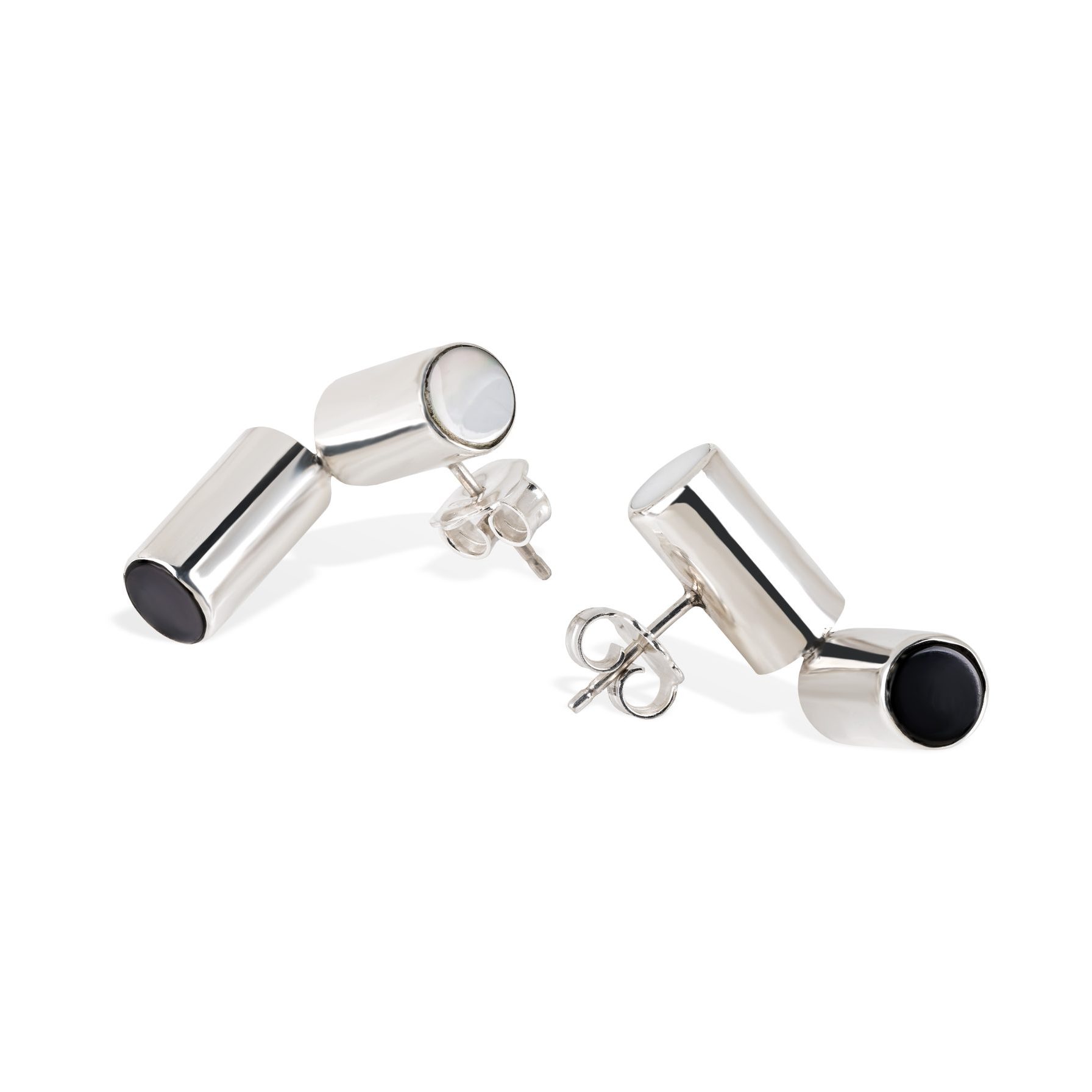 Home Earrings Tube Studs Onyx and Mother-of-pearl