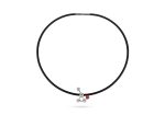 Medidas: pendente – 2 cm x 2,5 cm x 6 mm; colar borracha -42,5 cm x 3 mm; fecho prata – 2,2 cm x 3 mm